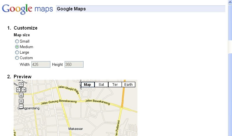 Klik link "Customize and preview embedded map"