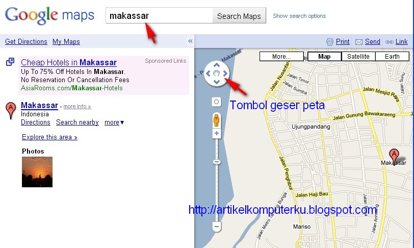 Selain mencari dengan kotak pencarian bisa juga dengan menggunakan tombol geser dan tombol zoom (vertikal slidebar zoom)