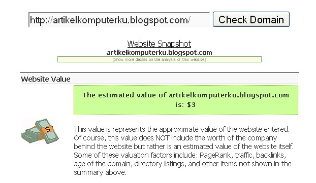 1. Harga blog Artikel Komputer dari situs site value calculator
